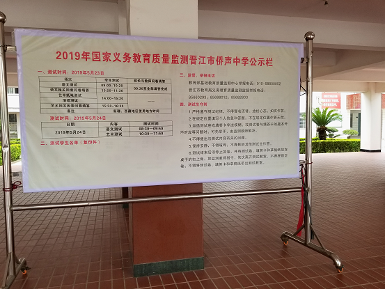根据国务院教育督导委员会办公室印发的《国家义务教育质量监测方案》(国教督办〔2015〕4号)和《国务院教育督导委员会办公室关于开展2019年全国义务教育阶段学生语文、艺术学习质量监测的通知》(国教督办函〔2019〕7号),2019年全国义务教育质量监测现场测试工作于5月23日顺利完成。